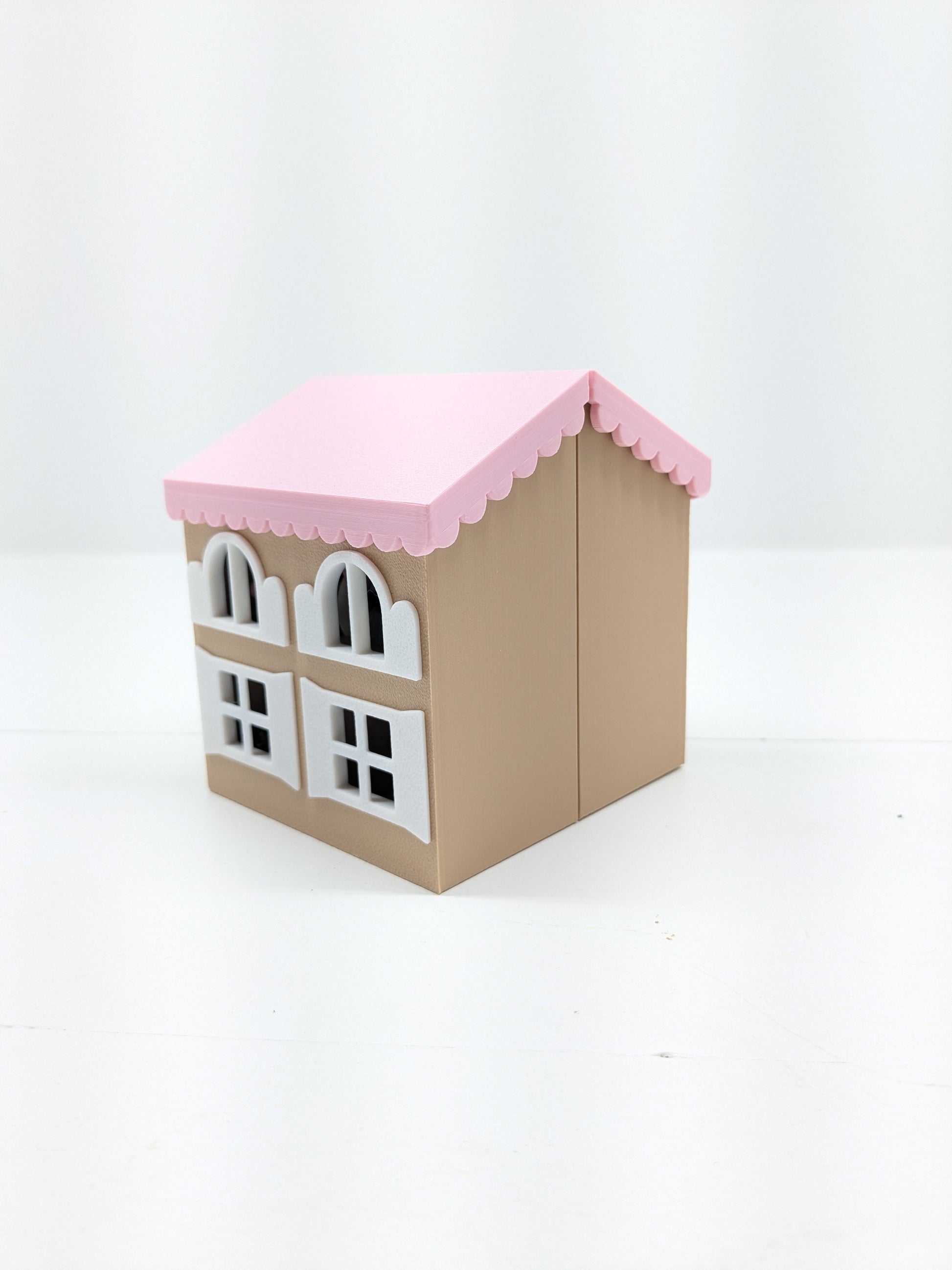 🏠 Hinged pet house with four cubbies and a pink roof
